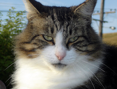 Last week John had a fall outside the door, hurting his head and ribs. The neighbours looked after him until the ambulance came. Late in the day he was back resting in the lounge. While I was sitting on his lap I didn’t feel well either. For a few days I couldn’t like eating. Drinking was all right. Outside the weather was awful. In the middle of the night I got home soaking wet and cold. I woke up John. In his wardrobe I found a dark spot, but in the morning I felt very ill. So John took me to the vet who said that I had not long to live. I felt sorry for John. He has been very good all the thirteen years of my life. We were good companions to each other. He has been my lovely friend. Thank you John. My life is up. 21 May 2009, 4.13 PM